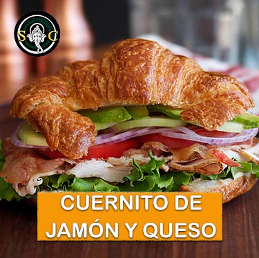 Disfruta de 2 deliciosas piezas de cuernitos rellenos de Jamón de pavo, Queso Amarillo, Queso Oaxaca acompañado de lechuga, jitomate, picante y cebolla.